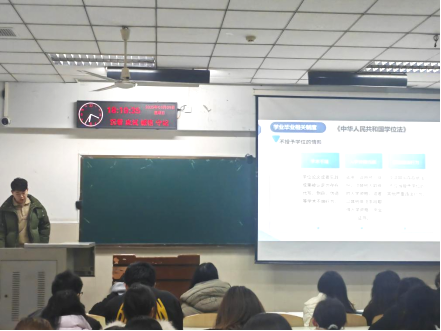各年级大会上,辅导员带领员工集中学习了《中华人民共和国学位法》,并围绕“学风建设”“避免学术不端行为”“合理利用学术资源”等话题积极开展讨论活动。通过学习,同学们对学士学位授予的基本程序、条件标准都有了深入了解。
