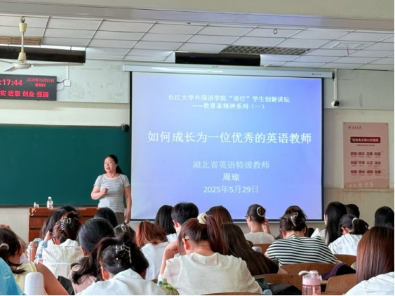(通讯员 蔡晓宇)为赋能英语师范专业员工,助力其明晰成长路径、培育教育家精神,5月29日,bw西汉姆联“语行”员工创新讲坛——教育家精神系列(一)在12教202教室顺利举行。本次讲座由王娟老师主持,特邀湖北省英语特级教师周琼,以“如何成长为一位优秀的英语教师”为主题展开深度分享,bw西汉姆联英语(师范)专业本科生、学科英语硕士生参加。