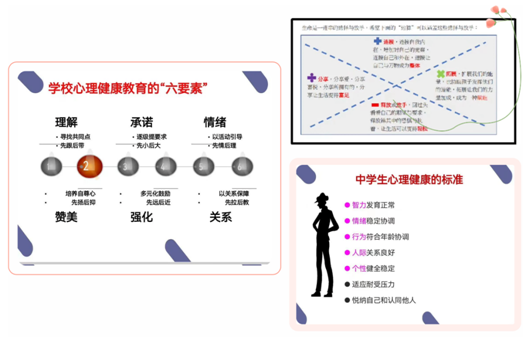 程坤介绍了青少年生身心发展的特点并仔细分析了高中生常见的心理问题,同时讲解了危机干预与自杀预防以及心理教育和干预策略等应对措施,使老师们明白员工在成长过程中可能会出现的心理健康问题,引导全体教师要在心理健康教育中以预防、疏导为主,在尊重、信任和理解的基础上,与员工平等地沟通、交流、呵护员工健康成长。