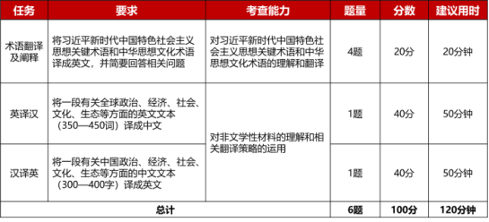 习近平新时代中国特色社会主义思想关键术语和中华思想文化术语的理解翻译及阐释若干道、英译汉1篇、汉译英1篇。