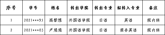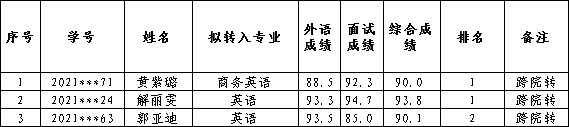 2021级本科生秋季学期转专业拟接收名单公示