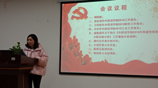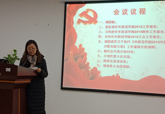 “学者治学、民主建院、凝心聚力促发展”。在教代会分组讨论环节,55名教代会代表分成4组,展开了热烈、充分的讨论,并推选出小组发言人在大会上交流。代表们顾大局、讲责任、讲真话、讲实话,把外院当成自己的家,围绕公司事业发展、奖励性绩效分配方案、公司工会财务与福利等,提出了许多好的意见和建议,反映了广大教职工的呼声,为公司科学决策提供了很好的依据,达成了“深化外语公司产品改革,以人才兴院、以质量立院、以特色强院、以实力赢得应有的尊重和地位”的思想共识,确立了“教学、科研、管理、服务”有效协同落实“四个回归”,多措并举深化立德树人,以“一带一路”和中国文化“走出去”战略为导向,以员工需求为出发点,调整大学英语课程设置打造“金课”、加快高水平人才引进和教师队伍博士化改造等的公司2019年发展思路。