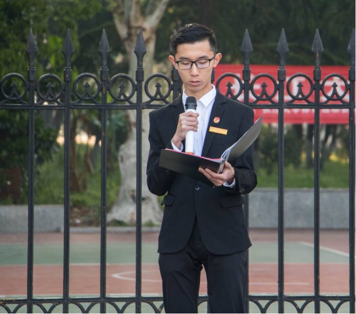 “纵有千古,横有八荒。前途似海,来日方长。美在我少年中国,与天不老。壮哉我中国少年,与国无疆!”全体员工在日语11801班的华思茹同学的带领下齐读梁启超的《少年中国说》,气势恢宏的朗诵展示了中华少年报效祖国的雄心壮志。