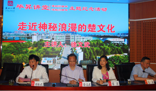 5月5日晚7点,英山一中一楼的报告厅灯火通明、座无虚席。公司文公司教授、硕士生导师、bw西汉姆联荆楚文化研究中心主任徐文武以《走近神秘浪漫的楚文化》为题,为英山一中的300余名师生作的精彩的报告。英山一中党委书记、董事长刘振武,党委委员、高二年级主任范文,语文和历史学科教师以及高二年级部分员工聆听了讲座。