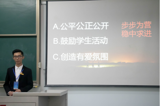 竞选演讲完毕后,杜岳青老师发表讲话。她提出:今天述职总体来讲,需要进步的空间很大。她希望我们能够提高述职能力,多学多看。同时,她还强调我们应该承担责任,要把自己打磨成器。最后,她为部长们颁发了聘书,并合影留念。