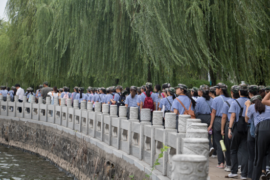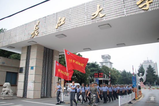 总教官详细安排,全体准备就绪后,16:00正式开始环绕古城墙的户外拉练。各班小班主任全程陪同,不让任何同学掉队。一路上微风阵阵,欢歌笑语。拉练虽苦,但是不妨碍同学们苦中作乐,时不时的喊喊口号提一下精神,唱唱歌。或是欣赏沿途的风景,感受湖泊河流环绕的古韵荆州。