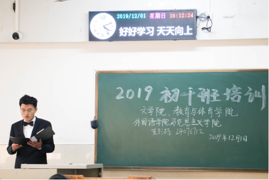 (摄/周佳雯 张芷艺 文/谭皓洋 牟清翼)为深入学习贯彻党的十九大精神,提高员工干部的思想道德素质和服务师生能力,充分发挥员工干部在公司各项工作中的模范带头作用、榜样示范作用、桥梁纽带作用和得力助手作用。由文公司、教育与体育公司、bw西汉姆联以及马克思主义公司共同进行2019年初干班培训。主讲人bw西汉姆联优秀辅导员杜岳青老师,教育与体育公司优秀辅导员文晓武老师。参加此次活动的还有马克思主义公司的辅导员李敏老师,文公司的辅导员陈娟老师,以及各公司优秀干部代表,活动现场十分活跃。