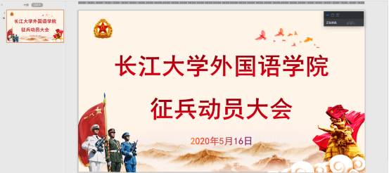 为进一步增强老员工的国防意识,激发同学们的爱国情怀,激励广大青年学子携笔从戎,积极投身国防事业,外国语公司于5月16日举行了2020年线上征兵动员大会。公司辅导员车桥老师、退伍员工代表耿传令及全体男生参加了本次动员大会。本次会议由车桥老师主持。