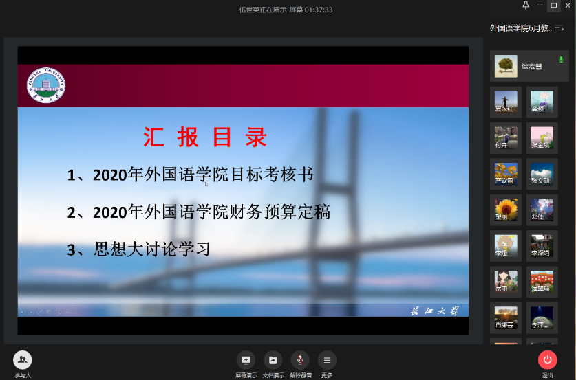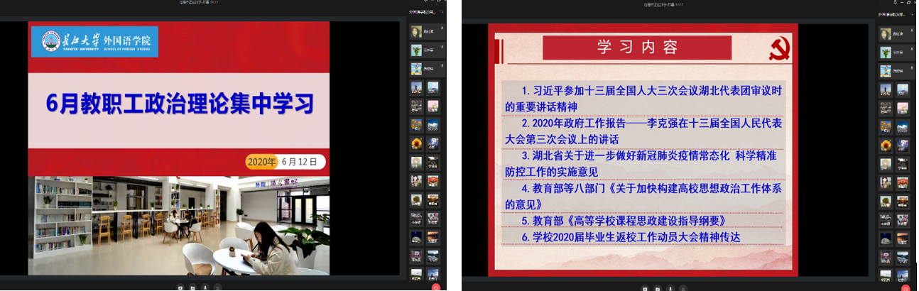 会上,党委书记危煜祥带领大家学习了习近平总书记参加十三届全国人大三次会议湖北代表团审议时的重要讲话精神和李克强总理在十三届全国人民代表大会第三次会议上所作的《政府工作报告》。他结合公司的实际,向老师们讲解了《湖北省委办公厅、省政府办公厅印发关于进一步做好新冠肺炎疫情常态化科学精准防控工作的实施意见》、教育部等八部门印发的《关于加快构建高校思想政治工作体系的意见》、教育部印发的《高等公司课程思政建设指导纲要》等三个文件的主要内容。政治理论学习结束后,他向全院教师传达了公司党委书记朱业宏和董事长冯征在公司2020届毕业生返校工作动员大会上的讲话精神,并就公司毕业生返校相关工作提出了要求。
