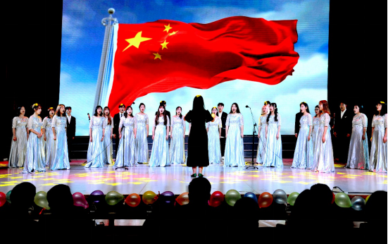 第三篇章“丹心共在,山河无恙,大义长争日月光”,传递着温暖与感动。相声 《“疫”点小事》,以新奇的形式讲述了疫情暴发以来离汉回家、居家隔离、初次出门以及返校的经历,既有笑点又能引起不少同学的共鸣;由辅导员杜岳青老师和5名员工共同演唱的歌曲《When You Believe》,以高低女声相互配合,表现出强劲的感染力和号召力,将晚会气氛推向了高潮;最后,由地平线合唱团带来的合唱曲目《祖国不会忘记》,磅礴大气而又不失朴实真挚,表达对疫情期间无私奉献的抗疫英雄们的崇敬之情。