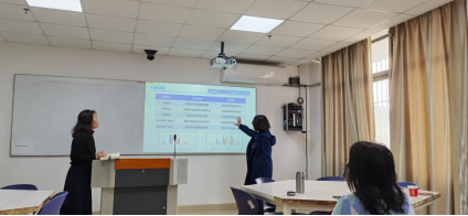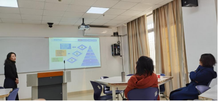 活动伊始,参赛教师王娟围绕《跨文化交际》的课程概述、痛点分析、创新途径与创新成效进行汇报。汇报结束后,经理谈宏慧从教姿教态、PPT的呈现形式等方面进行了指导,帮助王老师提升教学展示效果。副经理付小秋则建议聚焦于课程本身,深入剖析该课程的痛点问题,为课程的进一步优化指明了方向。