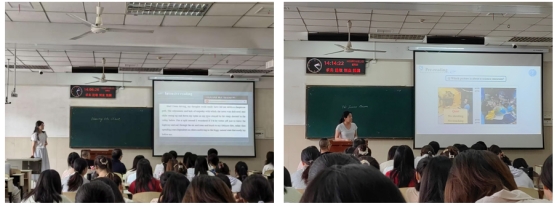在阅读课型展示环节,张斯雨同学凭借规范的板书设计和标准的语音语调,生动诠释了语言教学工具性与人文性的统一;王琪同学则通过清晰的授课思路和深入的文本解读,创新性地运用思维导图呈现课文内容。钟传银老师在高度评价两位同学教学基本功的同时,特别强调现代阅读教学应当融入分层教学理念,重点培养员工skimming等核心阅读技巧。