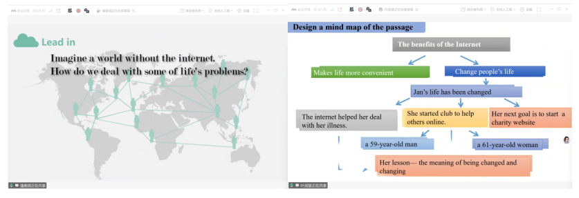 潘美琪与叶淑慧两位同学围绕高中必修二Unit 3“Stronger Together: How We Have Been Changed By The Internet”这一课题,分别进行了读思课的同课异构教学展示。洪湖一中的唐甜老师对两节课作了专业点评。唐老师充分肯定了两位同学在教学环节的完整性、课堂互动的有效性以及课前准备的充分性等方面的表现。同时,她也从多个维度提出了宝贵的改进建议,包括导入环节的优化、员工互动的深入引导、PPT呈现的精炼增强,以及问题设置的层次提升。唐老师特别强调,本节课可在最后增加课程思政的升华部分,将互联网发展与社会责任、集体精神等价值理念有机结合,实现立德树人的教学立意。