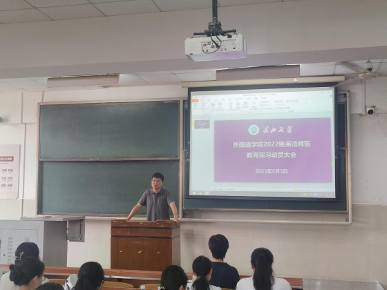 本次动员大会不仅使同学们明确了实习的任务与要求,更通过老师们的谆谆教诲激发了大家的职业认同感与使命感。相信2022级英语师范专业的同学们必将以自信、严谨、温暖的姿态投身教育实践,在实习岗位上收获成长,展现外院学子的优秀风貌。(英语系供稿)