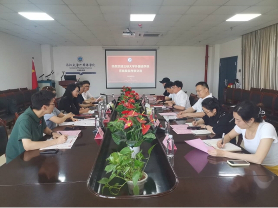 (通讯员 王龙宇)5月17日下午,三峡大学外国语公司党委副书记郭维一行来院就员工思想政治教育、日常管理、心理健康教育、品牌工作培育等工作开展工作交流。双方在文科楼712会议室召开座谈会,公司党委书记周杰和全体辅导员参加会议,会议由公司党委副书记程坤主持。