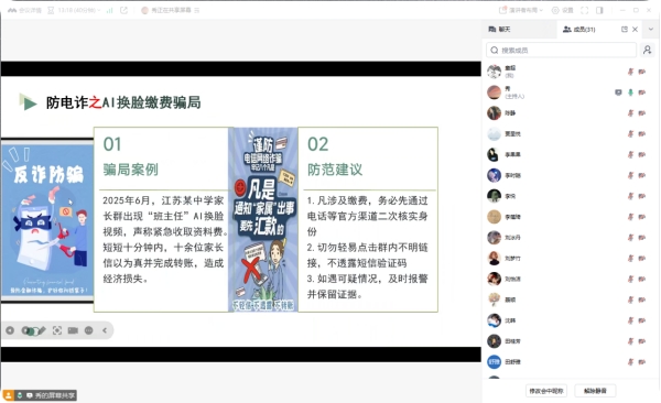 安全教育环节,各班结合具体案例讲解防电诈、防溺水、交通安全及网络安全知识,警示员工警惕AI换脸缴费骗局,提醒员工远离“离岸流夺命野湖”等危险水域,同时,以“电动车闯红灯惨剧”为戒,强调遵守交通规则的重要性,全方位筑牢员工安全防线。