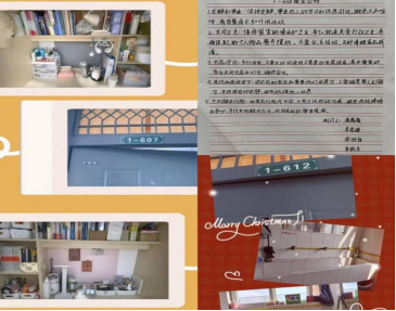 在生活方面,我们英师12201班的同学们更是情同手足,互帮互助。无论是学习上的困难还是生活中的琐事, 大家都能伸出援手,共同面对。在班级宿建方面表现出色。首先,班级的各个宿舍都高度重视宿舍安全,确保用电规范、无违规电器,每位同学都致力于创造安全的居住环境。同时,各个宿舍内都制定了严格的宿舍卫生制度,各宿舍成员分工明确,认真打扫卫生,保持宿舍整洁干净。在每周四进行的宿舍卫生评比中,宿舍1#607和1#611多次获得“优秀寝室”称号,这也激励大家共同维护良好的宿舍环境;其次,在宿舍文化建设方面,班级积极倡导和谐、文明、积极向上的宿舍氛围。同学们共同装饰自己的宿舍,会在门口贴上励志标语或者温馨的壁画,让宿舍充满家的温暖;然后,班级还注重培养同学们的良好生活习惯。在每一次开展主题班会,都会引导大家养成规律作息、健康饮食的习惯。在每月的宿建工作总结,通过找宿建委员了解到,在班级的宿舍中,关于作息时间问题,同学们之间会相互提醒,按时作息,保证第二天以饱满的精神状态投入到学习和生活中。