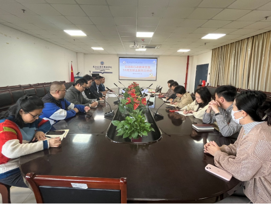 (通讯员 肖娜芸)10月31日下午,日语和行政教师党支部在文科楼712会议室开展10月支部主题党日活动,公司党委书记为党员讲授了专题党课。