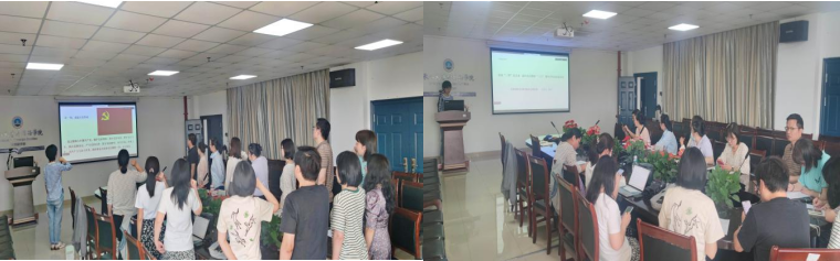 活动分两个阶段,公外教师党支部书记徐芳主持了第一阶段会议。周杰书记肯定了两个支部在过去工作中取得的成绩,并对武汉校区老师回归荆州校区教学的情况及两个支部合并开展活动的必要性做了说明。