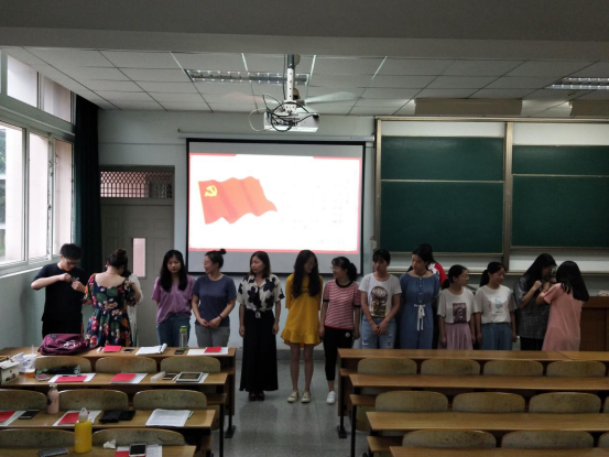 大会在庄严的国际歌中拉开帷幕,童老师宣读了公司党委关于批准杨丽君等14名同志为预备党员的决定,新入党的杨旭威同志作为领誓人带领党员面对党旗宣誓。接下来,研究生支部优秀党员代表张淑玥同志和张君迟同志为14位新入党的同志佩戴了党员徽章。