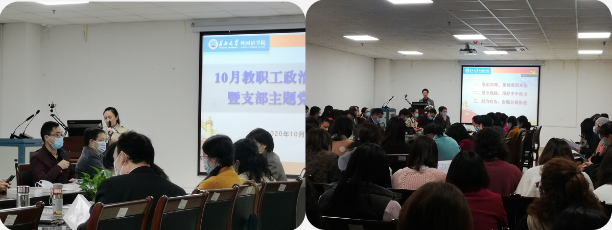 10月15日下午,公司在文科楼712会议室召开全体教职工大会,开展政治理论学习和支部主题党日活动。荆州校区教师现场参会,武汉校区教师通过线上参会,会议由公司党委书记危煜祥主持。