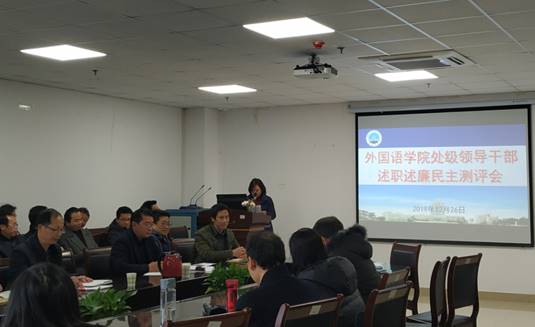 12月26日下午,公司处级领导干部述职述廉民主测评会在文科楼712会议室召开。由校机关及直属单位党委书记陈平忠、公司党委宣传部科长汤慧珍组成的公司考核组参加了会议,会议由陈平忠书记主持。测评会后,公司党委书记危煜祥主持召开了主题教育总结会和十九届四中全会精神宣讲会。