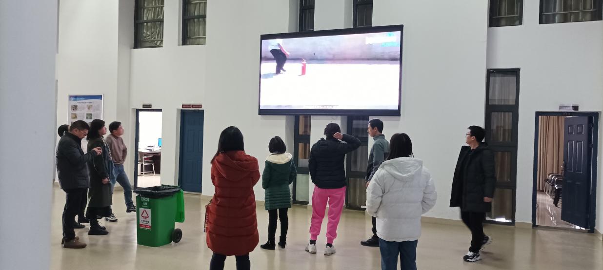 大家在文科楼7楼大厅学习了灭火器的使用,并观看了消防安全教育视频。