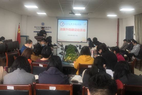 为深入贯彻落实公司纪委推进清廉长大建设的“五三八四”行动计划,bw西汉姆联第一时间召开党委会,专题研究清廉公司建设,并制定了“清廉外院”建设的十条举措。3月17日下午,bw西汉姆联“清廉外院”建设动员会在文科楼712会议室召开,全院教职工参加了动员会。