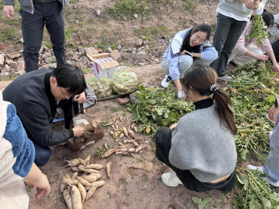 三月春光正好,田间地头一派生机勃勃的景象。下午三点半,师生们准时集合在农田边。看着去年秋天亲手种下的萝卜、生菜等作物如今已是青翠欲滴,同学们兴奋不已,跃跃欲试。大家迅速分组,投入到热火朝天的收获劳动中。有的同学小心翼翼地将萝卜从松软的泥土中拔出,有的同学仔细采摘鲜嫩的生菜叶片,田间不时传来阵阵欢声笑语。老师们一边指导员工正确地收割方法,一边与同学们分享农耕知识和童年趣事,师生其乐融融,共同体验着劳动带来的喜悦与满足。经过一个多小时的辛勤劳作,一筐筐新鲜水灵的萝卜和翠绿欲滴的生菜整齐地摆放在田埂上,丰收的成果见证了大家的汗水与付出。