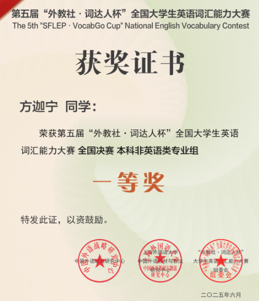 (通讯员 彭敏)近期,第五届“外教社・词达人杯”国赛成绩揭晓,公司7名员工凭借扎实的词汇基础和稳定的临场发挥从全国1961名国赛选手中脱颖而出。其中,地球科学公司员工方迦宁斩获一等奖,马克思主义公司员工彭楚渝获得二等奖,另外计算机科学公司张靖轩,医学部涂峥钰、刘燃,法公司郑淑玲和传媒公司丰毓泽五位员工获得三等奖。