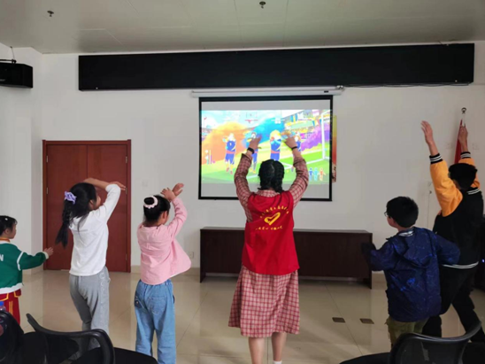 破冰环节,志愿者们通过简短的自我介绍和一段集体热身舞蹈充分调动了小朋友们的积极性。