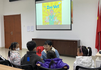 (通讯员 卢俊炜)12月3日下午,“绘声绘色”英语绘本故事会活动在荆州市图书馆一楼多媒体教室如期开展,并通过抖音平台“荆小图”账号实现全程线上直播。这是公司“阳光号列车”研究生志愿队参与的第45期“绘声绘色”活动。公司2023级学科英语专业研究生何禹典同学与学科英语专业研究生贺静同学,分别作为主讲师和助教参与了此次活动。