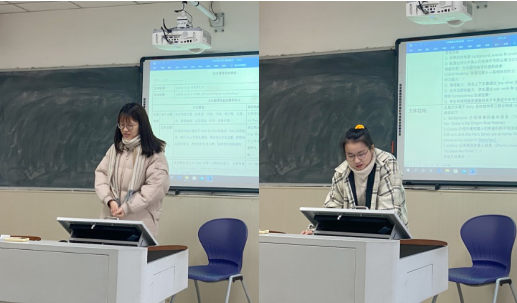 首先,谢家成教授向大家解释了文本解读在英语教学中的意义,并对学科英语方向研究生如何提高文本解读能力等问题做出解释。在教学中,教师对文本进行解读不仅能为员工提供相关的背景知识,还可以帮助员工扩大知识量,开阔眼界,培养逻辑思维能力。在此理念的指导下,王荣,陈娴和彭楷岚三位同学分别以七年级上册“Where is my school bag?” , “ I'm watching TV.”和八年级上册 “I'm going to study computer science.” 三篇文本为例,从单元主题到授课流程,再到文章的结构化和可视化分析,清晰的阐述了他们对文本的解读。同学们就此展开了激烈的讨论,纷纷提出个人对文本分析的理解和相关疑惑,现场学术氛围浓烈。