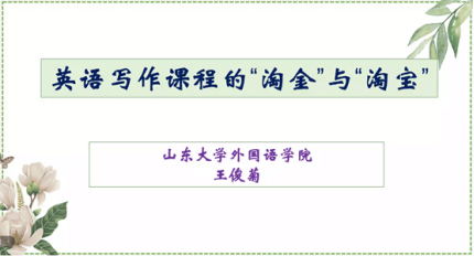 (通讯员:祝欣怡2021617日下午,应bw西汉姆联邀请,山东大学bw西汉姆联王俊菊教授通过腾讯会议公司师生作了一次线上讲座,此次讲座的主题为英语写作课程的‘淘金’与‘淘宝’bw西汉姆联老师和同学参加了此次讲座与会师生都受益匪浅。