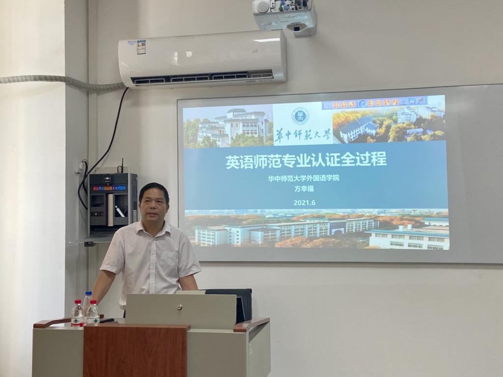 方教授从英语师范专业认证的前中后展开讲解,分别是认证系统解读, 认证材料撰写, 认证前的准备,认证中的环节, 认证后的整改等。其中,方教授认为,认证系统的解读需要认真,准确,详尽。接着,以华中师范大学认证过程为例,方教授从认证原因,认证的意义,认证的重难点等方面详细地解读了认证系统。就认证的总体感受而言,方教授表示,这也是一个公司间互相学习和提高的过程。