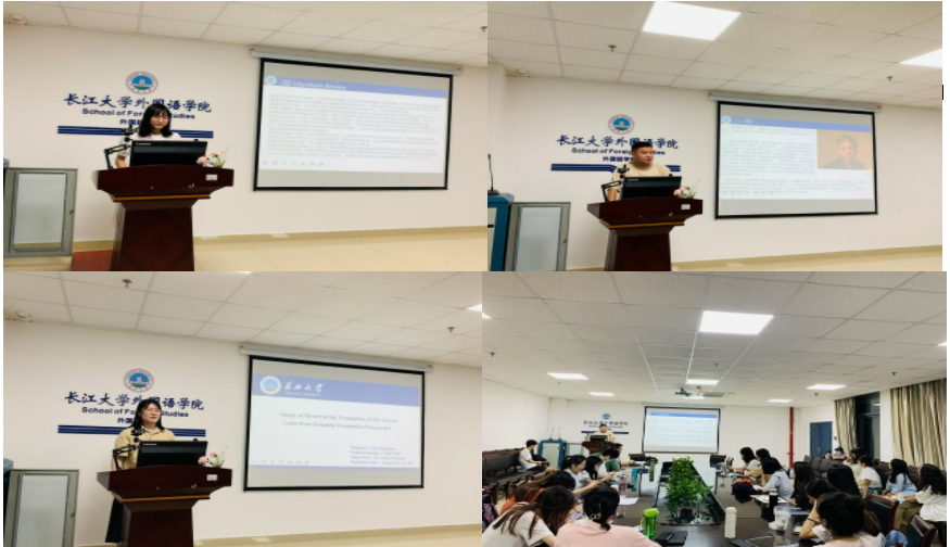 本次报告会伊始,涂洁同学基于系统功能语言学及物性视角分析了外交部发言人华春莹2016年-2020年的答记者问文本,通过自建语料库的方式分析了其在演讲时运用的不同过程类型。陈风华老师就其介绍中高频词分析数量、不同过程的例证作出点评并建议其将例证进行量化。紧接着,吴昊同学以《远山淡影》为研究对象,从文学伦理学角度对该书中的主要人物性格进行了解读。陈风华老师建议该同学可基于审美功能以及教诲功能对母亲这一角色进一步完善研究。最后,高梦晓同学对姚乃强、侍桁和王元媛三个《红字》中译本进行了对比分析,基于女性主义翻译观,探讨了性别因素对译文中女性形象的传达是否有影响以及男性本位思想是否潜意识里对译者思考的角度有影响。陈风华老师建议其将国内外译者对女性主义翻译的观点进行归纳,从而构建一个完整的女性主义翻译的框架。