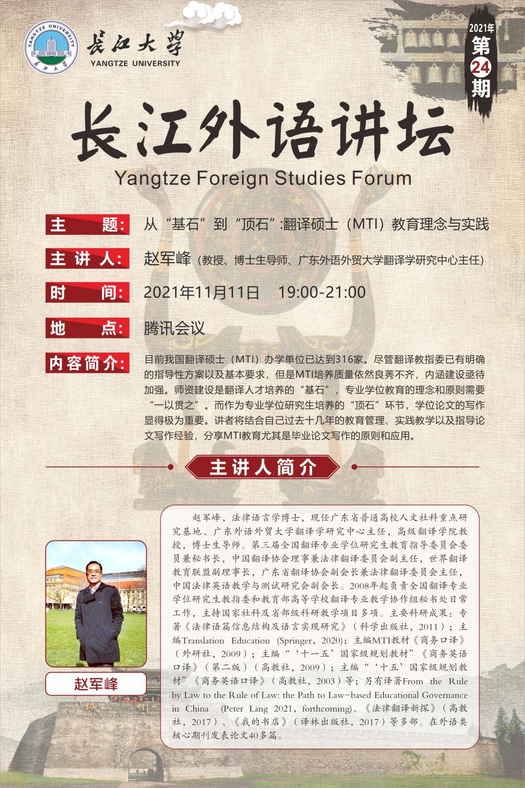长江外语讲坛(2021年第二十四讲)从“基石”到“顶石”:翻译硕士(MTI)教育理念与实践