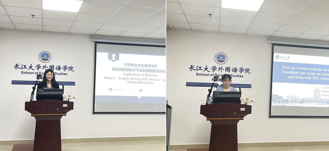 随后,杨陈妤同学通过分析几个员工的不修改行为和不修改心理,为大家带来了主题为“不修改等于不投入--外语写作学习者书面反馈不修改行为的多个个案研究”的汇报。