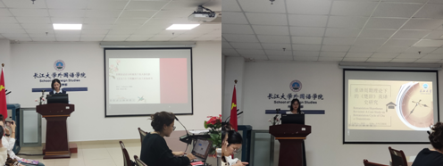 然后,郑甜同学以“重译周期理论下的《楚辞》英译史研究”为题向大家做了汇报。她首先介绍了选题背景、研究目的与意义。接着介绍了《楚辞》英译及其研究综述,她指出,当前学界对《楚辞》的英译研究视角、深度、广度等方面仍有不足。紧接着,郑甜对重译理论及其应用研究做了综述。她就“重译概念争论”、“重译的定义及类型”、“重译假设及其实证研究”、“重译标准下经典译本的标准”等多个方面进行了综合论述并进行总结。最后,她结合文献综述提出了自己的研究问题,明确了研究思路、研究方法,并给出了详细的研究设计。