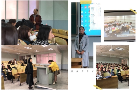 接下来,曹忠慧老师的读写课则让听课的老师们忙碌个不停,一边认真倾听,一边及时做笔记,还时不时拿起手机拍下我们想借鉴的PPT图片,生怕错过了任何一个画面。她的口语如此地流利顺畅,她脸上的笑容如此地甜美可爱,犹如一位邻家小姐姐,当“员工”有不解时,她能机智地用不同的表达来解释,直到“员工”听懂,当员工有不同意见时,她能适时点拨和引导他们的再思考,直到会意地点点头,然后曹老师总是用不一样的语句来鼓励或赞赏她的“员工们”,她的课堂,是能让员工们享受到学习的快乐的课堂!