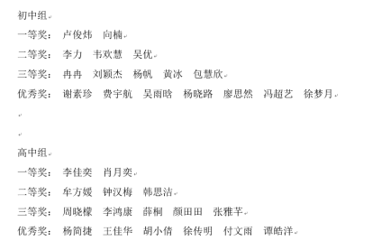 通过现场十名员工评委和四位老师评委的现场打分,2019级英语师范生教育技能竞赛获奖名单如下: