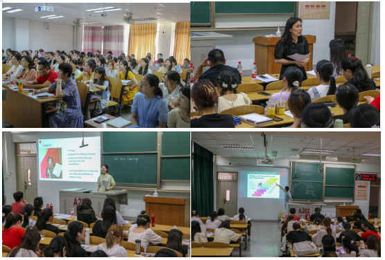 此次大赛主要由即兴演讲和授课两部分组成。首先是即兴演讲环节,每名选手抽取演讲题目后有五分钟准备时间,随即进行三分钟的即兴演讲,演讲内容跟英语学科和班级管理相关。接着高中组以The importance of Life-long Learning为主题,初中组以Zhalong- a special place为主题进行10分钟的授课,选手需要在规定时间内展示教学设计,PPT和板书等内容,要求授课环节完整流畅,能体现教学设计思路和创新思维,并融合课程思政内容。选手们满怀热情,自然流畅的介绍单词,讲解课文意义,通过流利的英语口语表达将自己的教学内容进行解说。期间还十分注重课堂氛围,不断进行课堂问答激发员工积极性。这些都展现了公司师范生对教学技能的追求和英语学习基础的扎实。